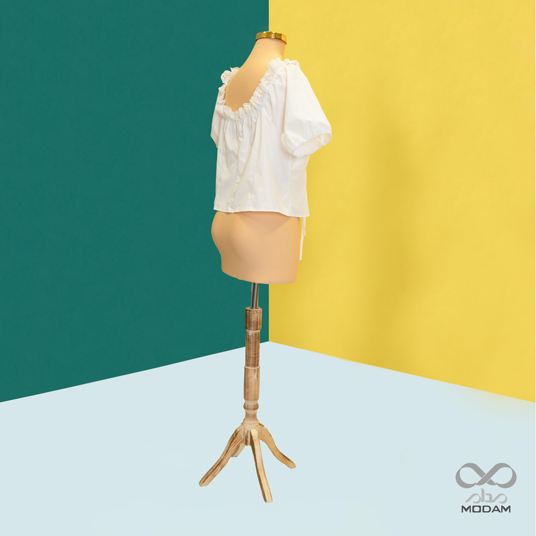 تاپ زنانه بندی سفید – ترکیبی از لطافت و ظرافت