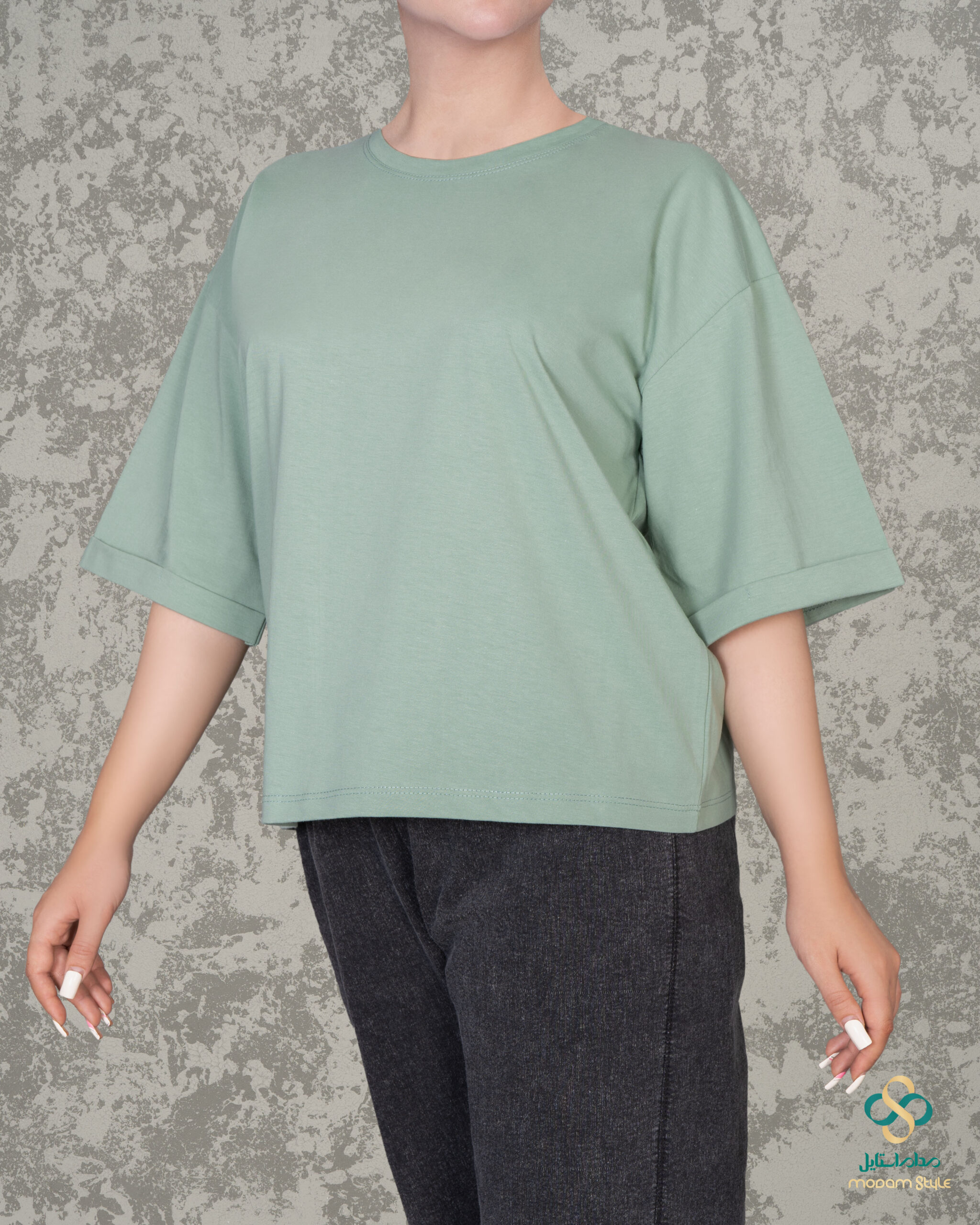 تیشرت کراپ چاکدار چاپ دار دورساتین
