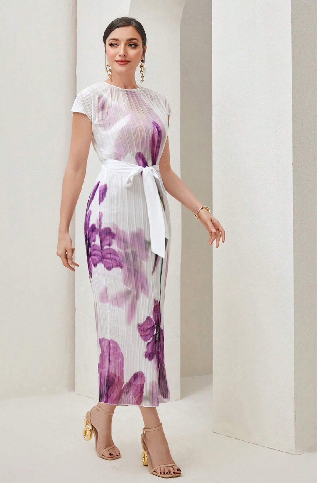 پیراهن زنانه کمربنددار با طرح گل – ترکیبی از لطافت و ظرافت