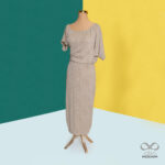 طراحی نامتقارن برای جلوهای خاص و متفاوت – آستینهای خفاشی که راحتی را در کنار استایل شیک ارائه میدهند – فرم مدادی و بلند مناسب برای مراسم رسمی و نیمهرسمی – رنگ کاراملی (Apricot) که به زیبایی با اکسسوریهای طلایی ست میشود