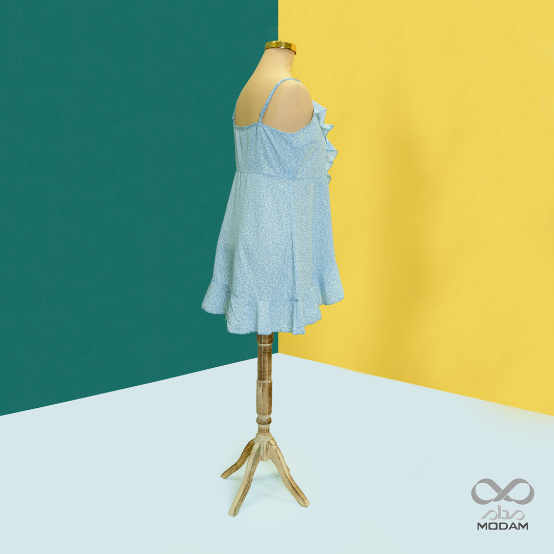 جنس نرم و راحت: ترکیب 92% پلیاستر و 8% الاستین برای سبکی و تنفس بهتر پارچه – طراحی بوهویی و دخترانه: دامن چیندار (Ruffle Hem) و برش Wrap برای استایلی ظریف و زنانه – فرم آزاد و کمربنددار (Belted Waist): امکان تنظیم اندازه برای فرمدهی زیباتر به اندام – بندهای نازک (Spaghetti Strap): مناسب برای روزهای گرم بهار و تابستان – چاپ ظریف گیاهی (Ditsy Floral Print): جلوهای لطیف و رویایی برای استایل روزمره و ساحلی